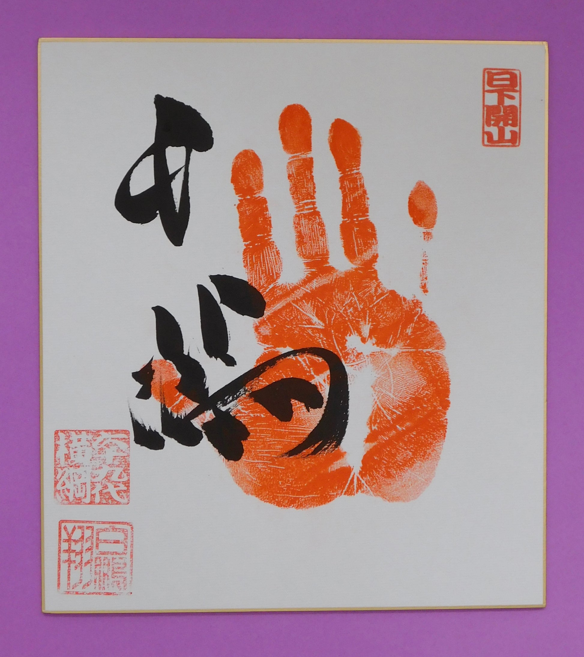 Authentic tegata made by the 69th Yokozuna Hakuho. The greatest rikishi is sumo history, Hakuho won a record 45 top division titles during his impressive 20 year career in the sport.