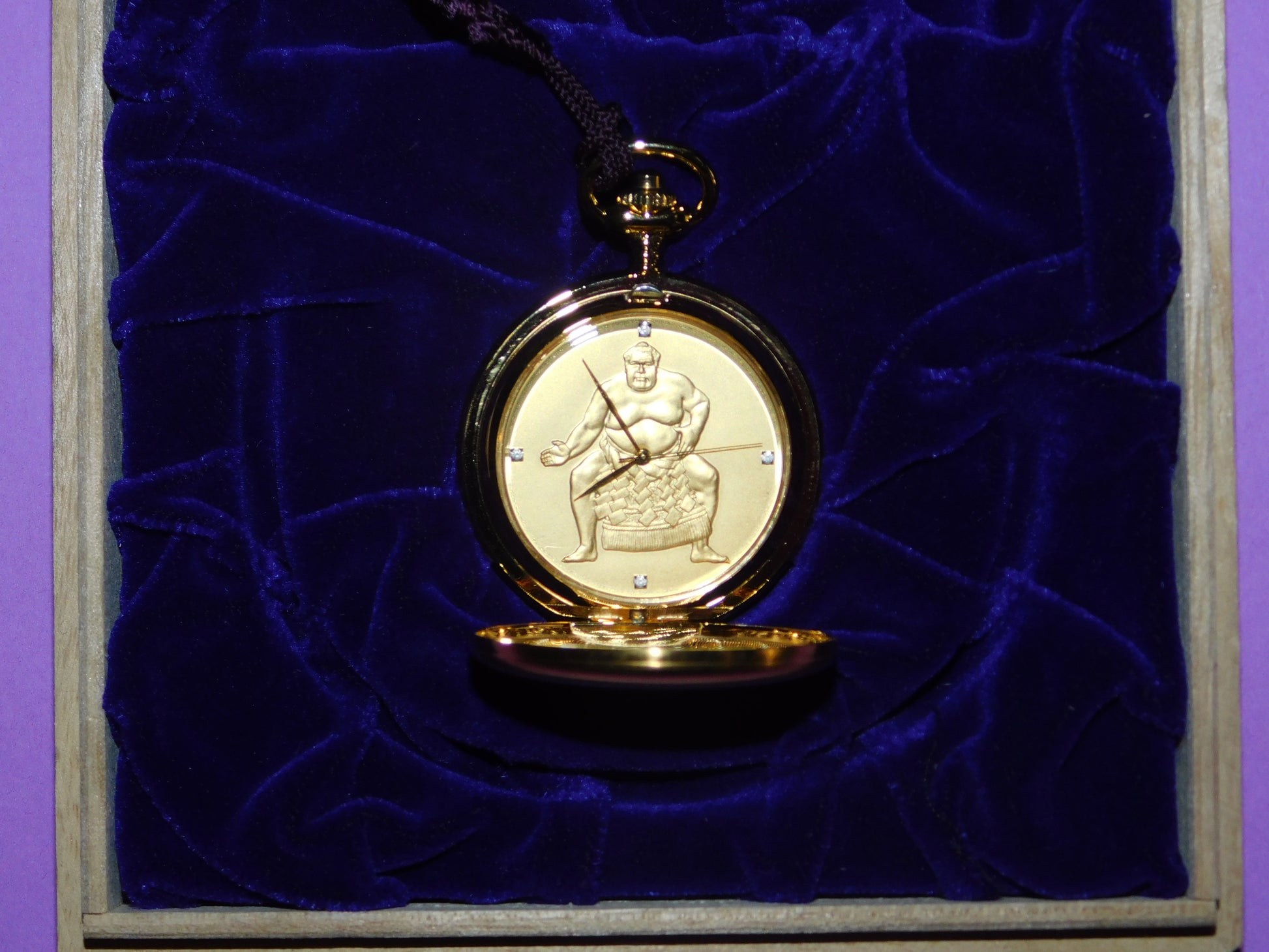 To mark Musashimaru's promotion to Yokozuna, a limited edition pocket watch was released in Japan in 1999. 26 years old - never used.