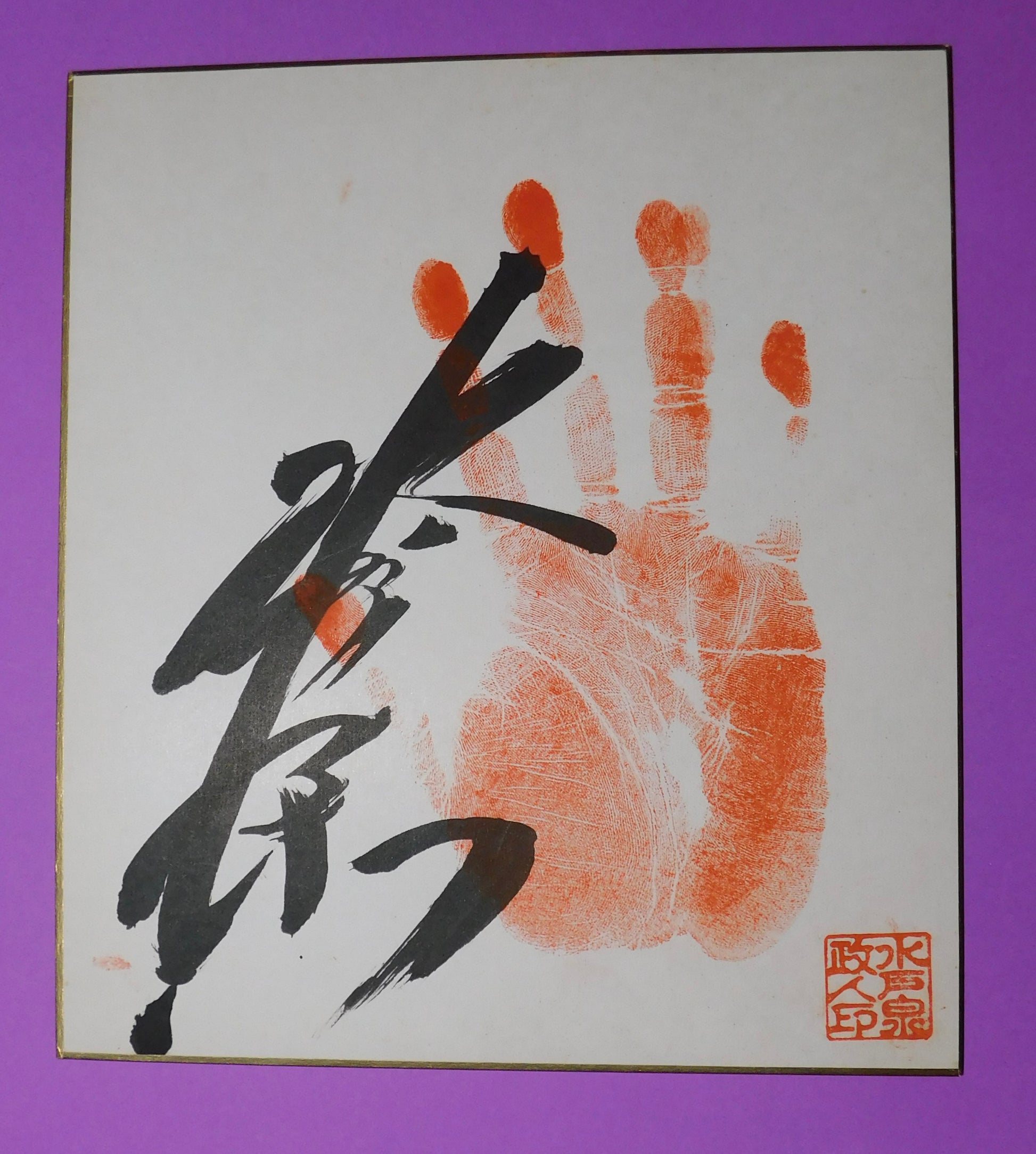 Authentic tegata made by 1980s Makuuchi rikishi Mitiozumi. Rare example with name stamp.