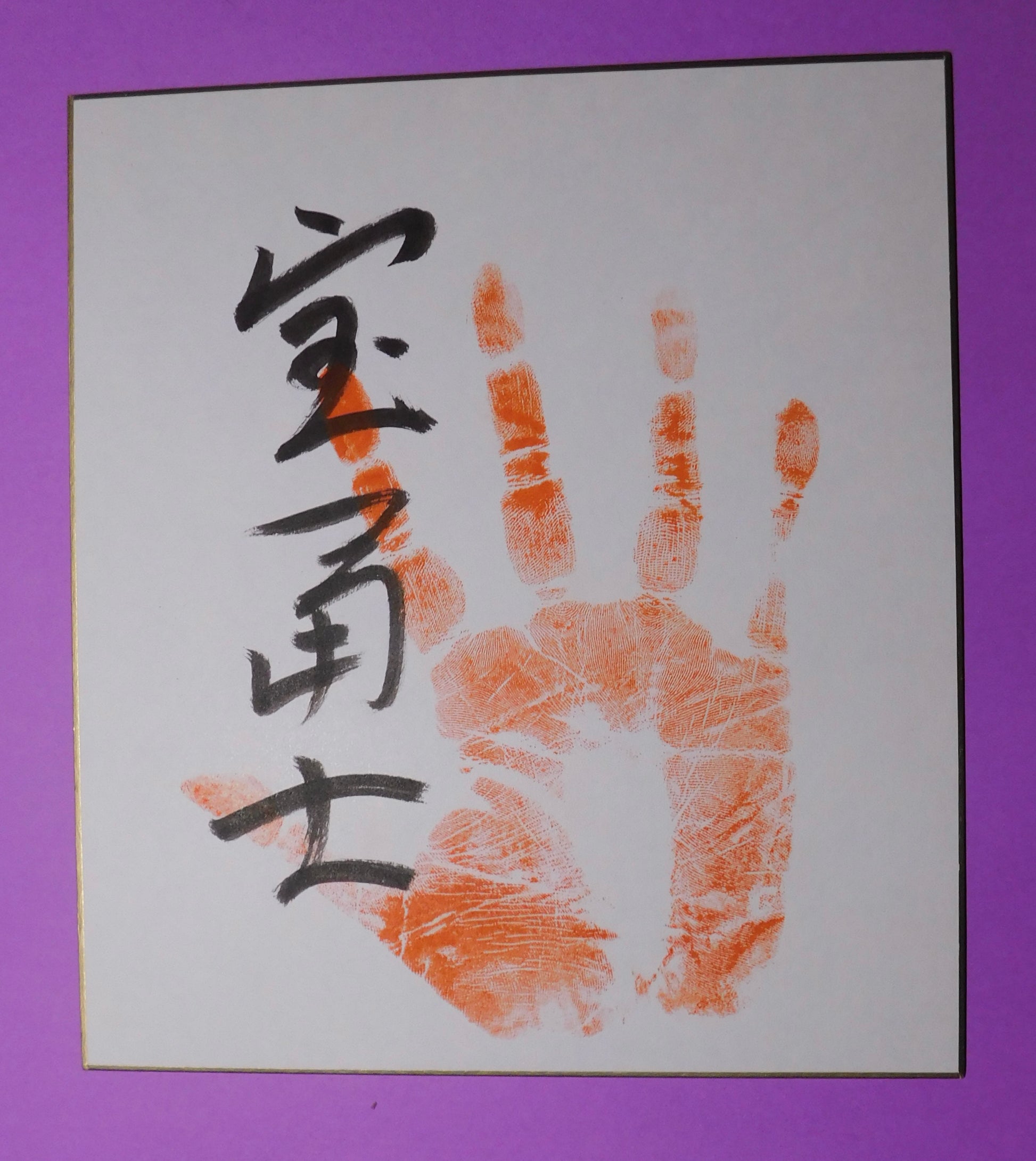 Authentic tegata made by Takarafuji and in excellent condition. In vibrant red - and from his early years as a rikishi (less flowing shikona).