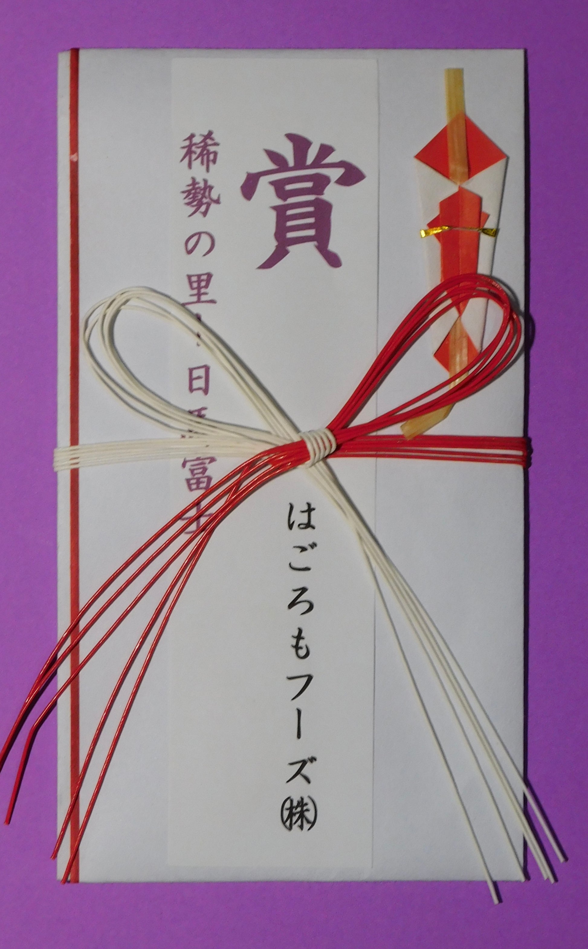 You have seen the large stacks of prize envelopes being awarded to the winners of Makuuchi bouts. This is a rare opportunity to own one. These are rare items which are occasionally gifted to supporters of a rikishi. A double Yokozuna envelope is a special piece!